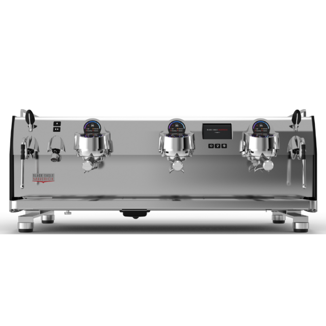 The Black Eagle Maverick Coffee Machine in a striking Matt Black Finish with Stainless Steel Eagle is a top-tier espresso machine crafted for precision and style. With three groups, this machine is designed to meet the demands of high-volume coffee service in a professional setting. The group height of 100mm ensures versatility for various cup sizes. Featuring a steam boiler with a substantial capacity of 17.3 liters and individual coffee boilers with a capacity of 0.7 liters for each of the three groups, the Black Eagle Maverick provides consistent and efficient brewing. Powered by a robust electrical system of 8.7Kw at 415V/3ph+N, this coffee machine delivers the necessary power for rapid heating and continuous performance. The dimensions of 105.6 x 74.5 x 43.3 cm (height) make it a compact and efficient choice for your coffee service setup.