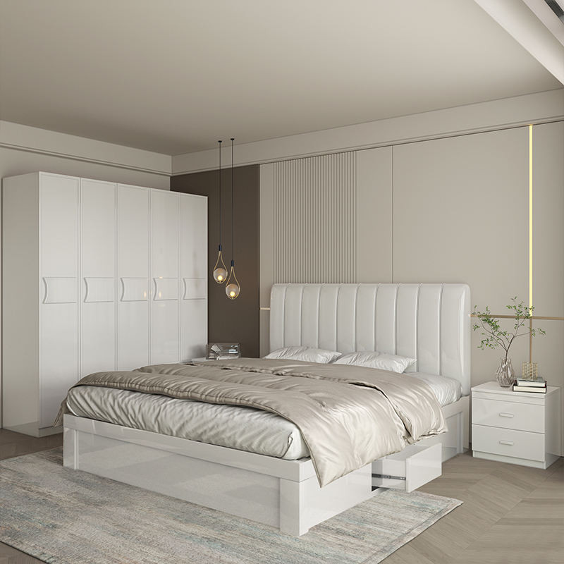 hot sale king size high gloss 1.8 M wooden frame bed set furniture with wardrobe bedroom furniture modern mdf full bedroom sets